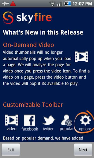 • Better Quality Video – Skyfire delivers optimized, smooth video based on your specific Android screen dimensions.