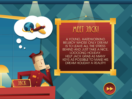 In this action puzzle game you play Jack, a young bellboy working at a classic art deco hotel. He has some long overdue holidays coming up, and he simply can’t stop thinking about how nice it would be to go to Hawaii and just relax on the beach. But pretty soon he snaps back to reality and realizes that it’s not gonna be easy. You see, this hotel is not like any other hotel you’ve ever seen. In here, you are constantly moving so you better make sure that you don’t run out of floor, stumble and knock over stuff let alone run into angry rabid dogs! Keeping all those things in mind, you still have to bring guests their luggage, collect their keys, take care of their pets and please their every little request... Phew! - enough talking - back to work!